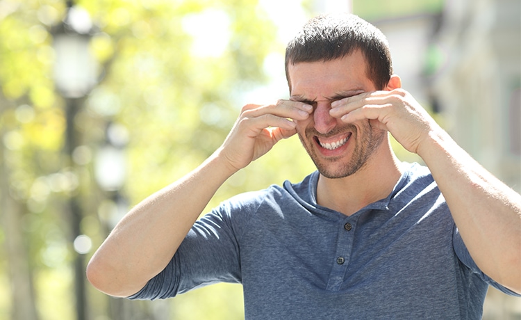 Zu den häufigsten Allergien gehört die allergische Rhinokonjunktivitis. Diese ist umgangssprachlich auch als Heuschnupfen bekannt und führt dazu, dass Betroffene unter Symptomen wie z. B. einer laufenden Nase, Niesen oder juckenden Augen leiden.