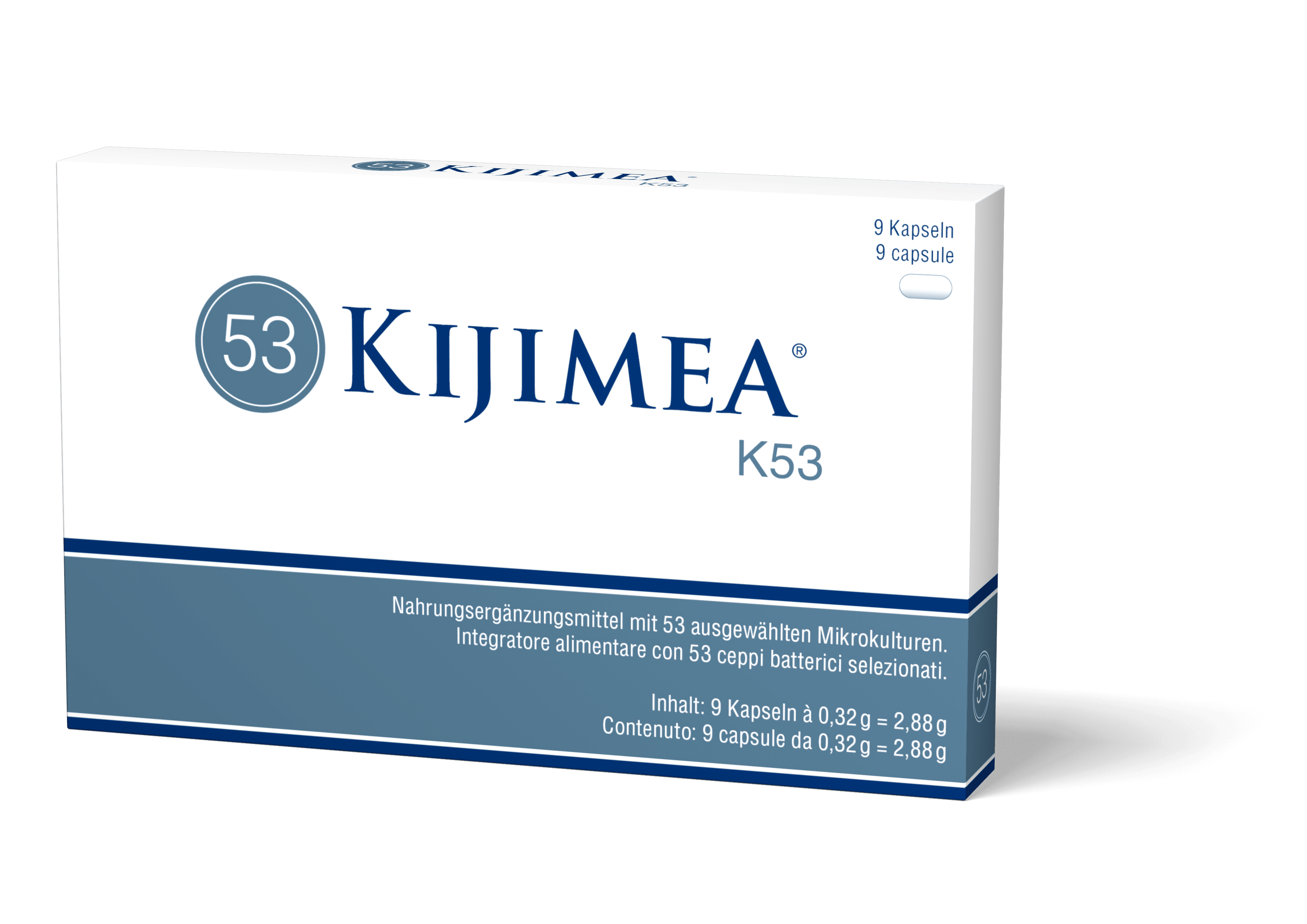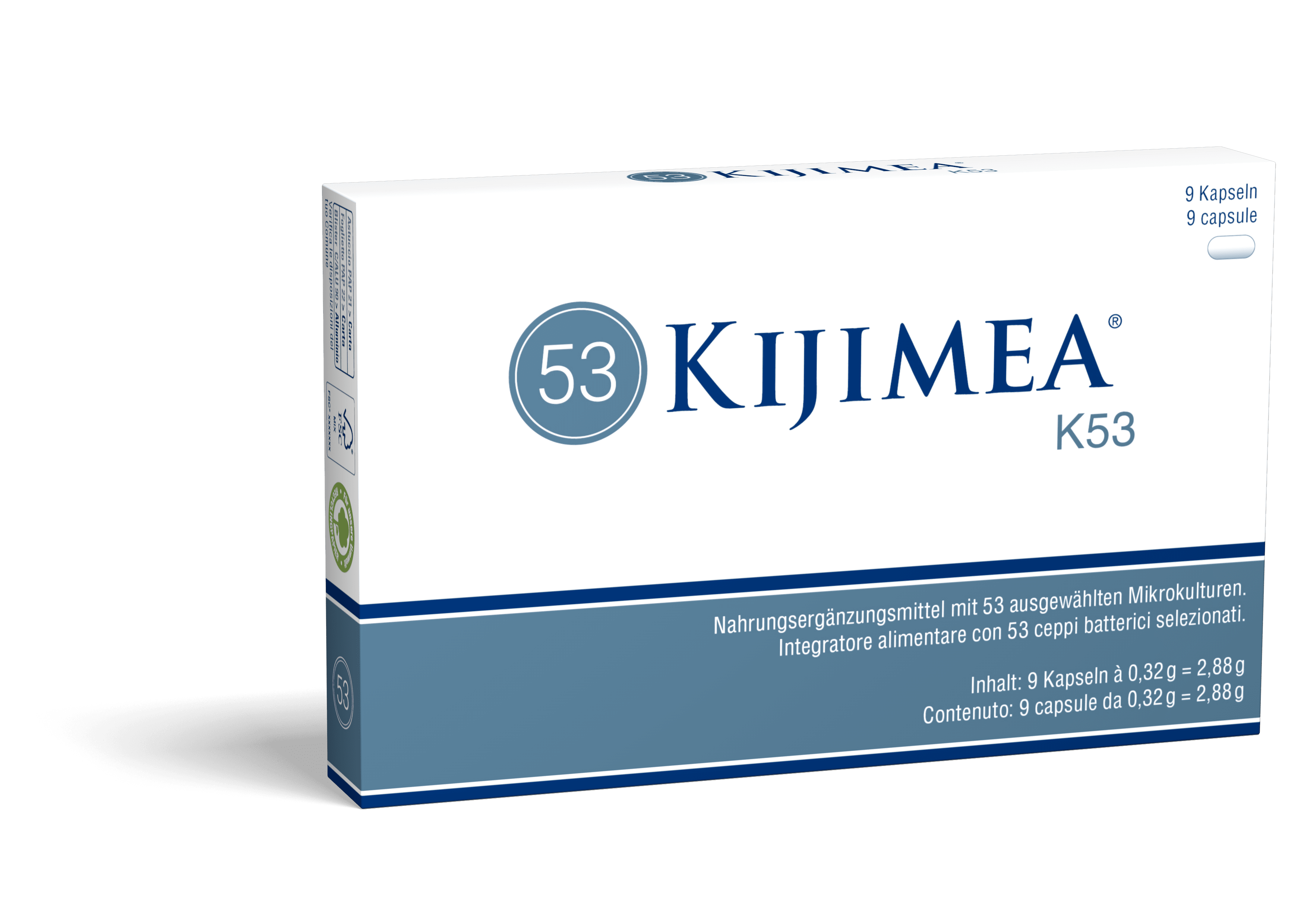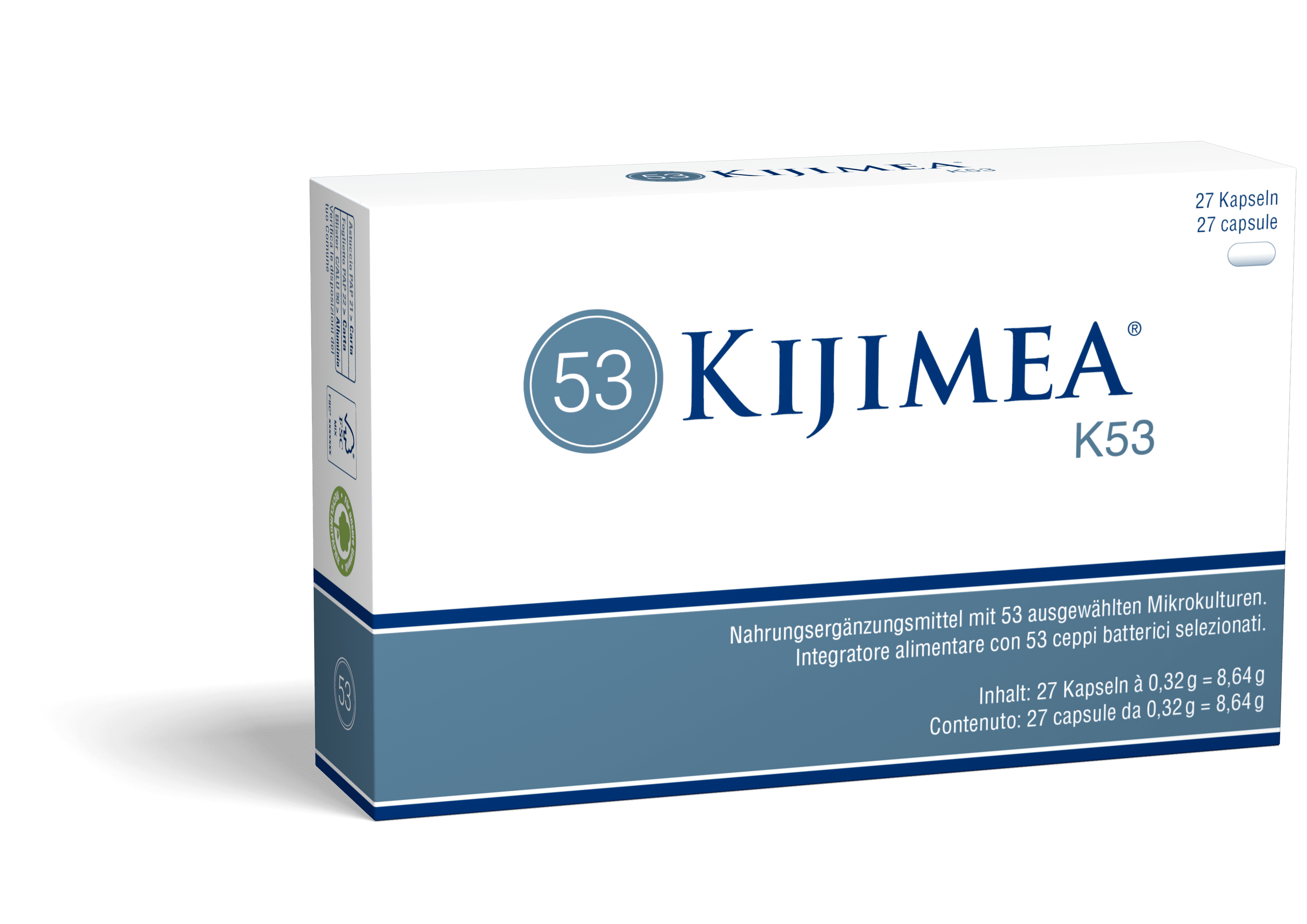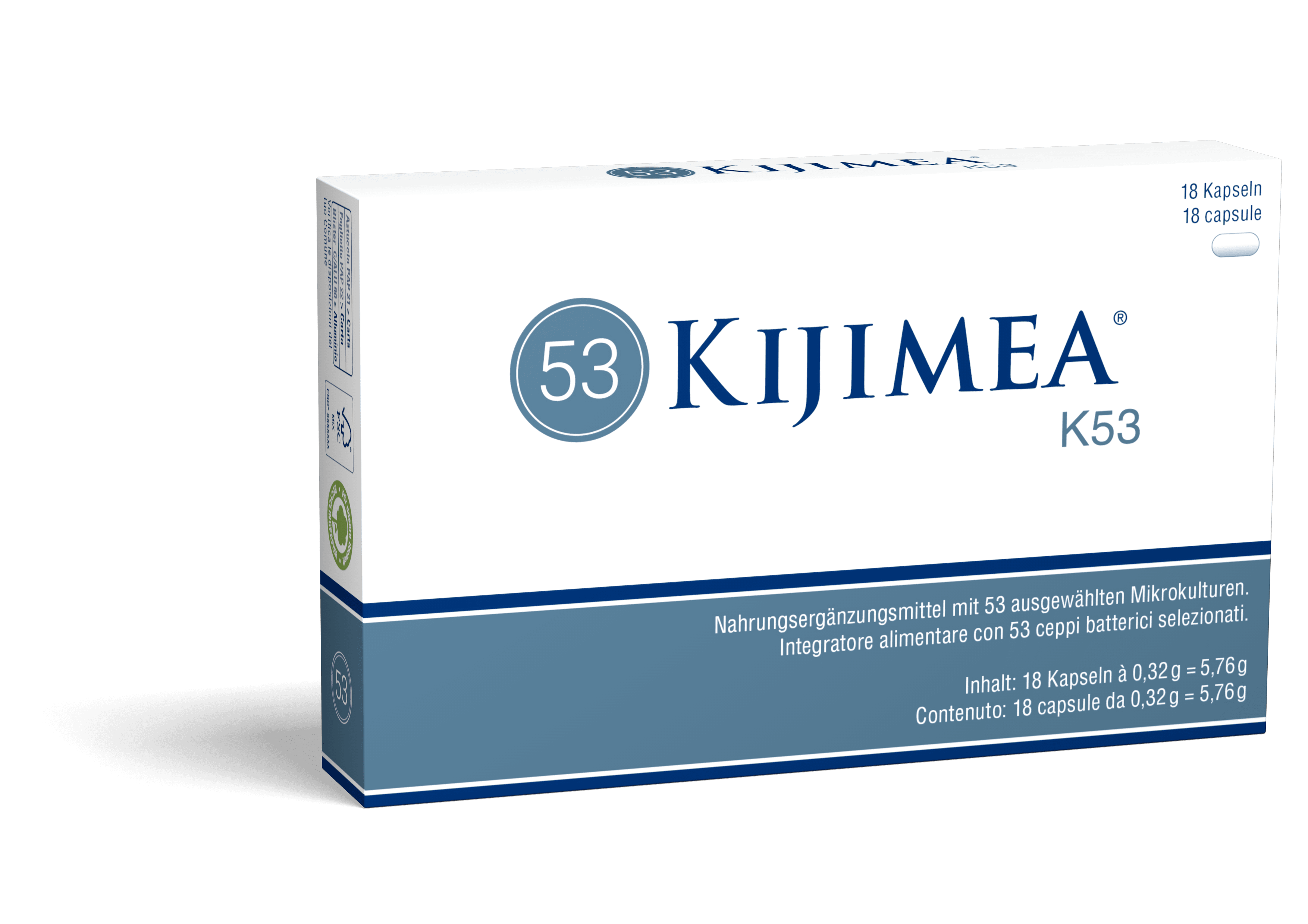 Kijimea® K53 ist ein Nahrungsergänzungsmittel mit 53 ausgewählten Mikrokulturenstämmen, die in der natürlichen Darmflora des Menschen vorkommen.
