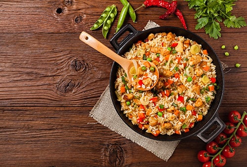 • 1 Schälchen Reis, gekochter (z. B. Basmati)